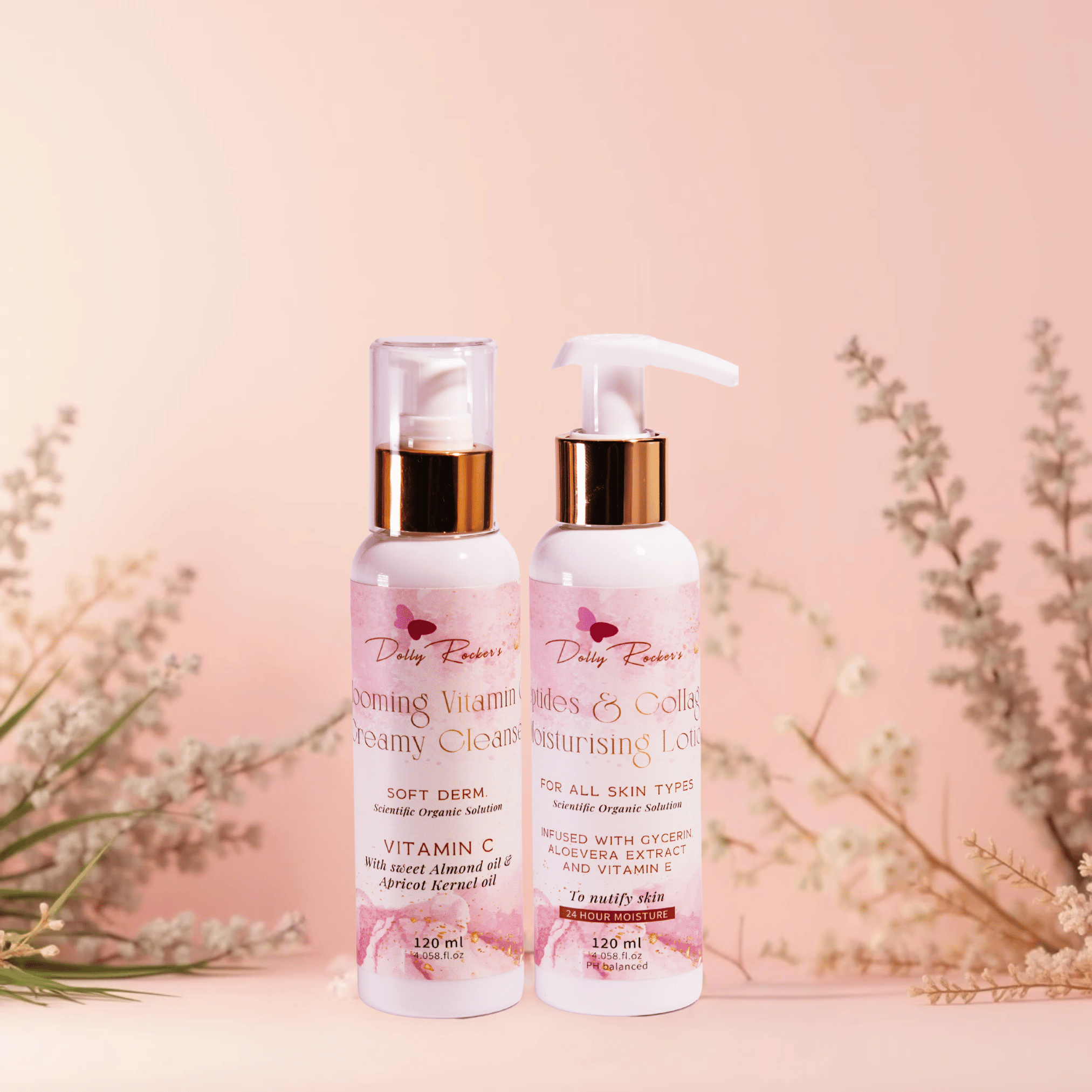 Experience the perfect balance of hydration and cleanliness with our Moisturizer & Cleanser Bundle. Start your skincare routine with our gentle cleanser, designed to effectively remove dirt, makeup, and impurities without drying out your skin. Follow it up with our luxurious moisturizer, which locks in hydration, leaving your skin soft, smooth, and nourished throughout the day. This bundle is ideal for maintaining a healthy, glowing complexion, providing your skin with the essential care it deserves. Perfect for all skin types, this duo ensures your skin feels fresh, hydrated, and radiant.